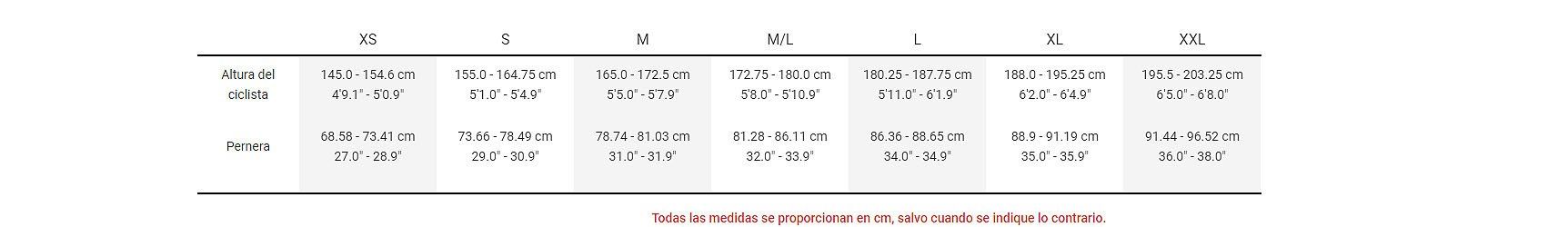 Las tablas a continuación muestran las tallas que recomendamos en función de la altura, pero hay otros factores que deben tenerse en cuenta para lograr un ajuste óptimo, como la longitud del brazo y de la pierna. Es por ello, que, a veces, nuestras recomendaciones se solapan. Por ejemplo, no todos los ciclistas que miden 1,73 cm utilizan la misma talla de bicicleta. La mejor forma de obtener el ajuste perfecto es consultando a los expertos en tu tienda Trek más cercana.