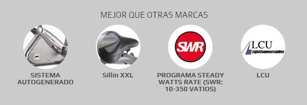 Bicicleta estática autogenerada de uso semi-profesional y estructura reforzada. Permite funcionamiento autónomo, sin conectar a la corriente eléctrica. Estática de altas prestaciones para entrenar en casa.