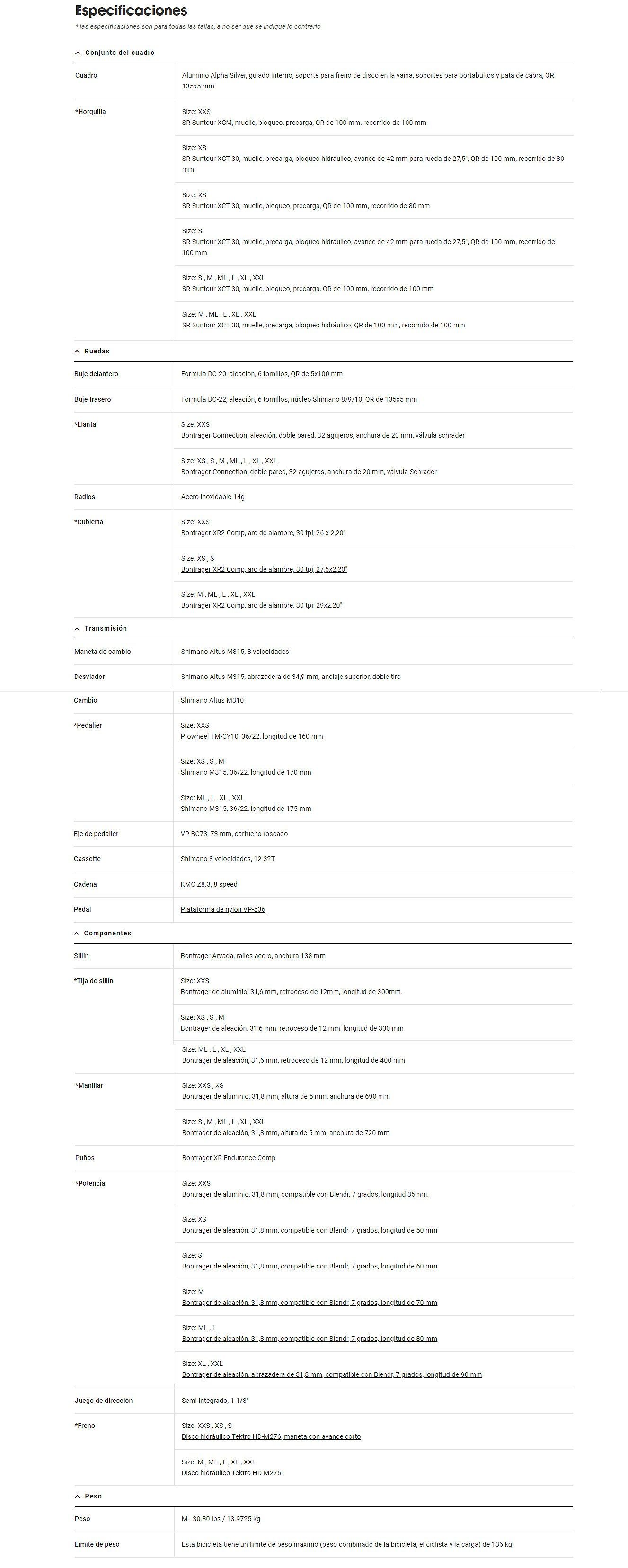 Las tablas a continuación muestran las tallas que recomendamos en función de la altura, pero hay otros factores que deben tenerse en cuenta para lograr un ajuste óptimo, como la longitud del brazo y de la pierna. Es por ello, que, a veces, nuestras recomendaciones se solapan. Por ejemplo, no todos los ciclistas que miden 1,73 cm utilizan la misma talla de bicicleta. La mejor forma de obtener el ajuste perfecto es consultando a los expertos en tu tienda Trek más cercana.