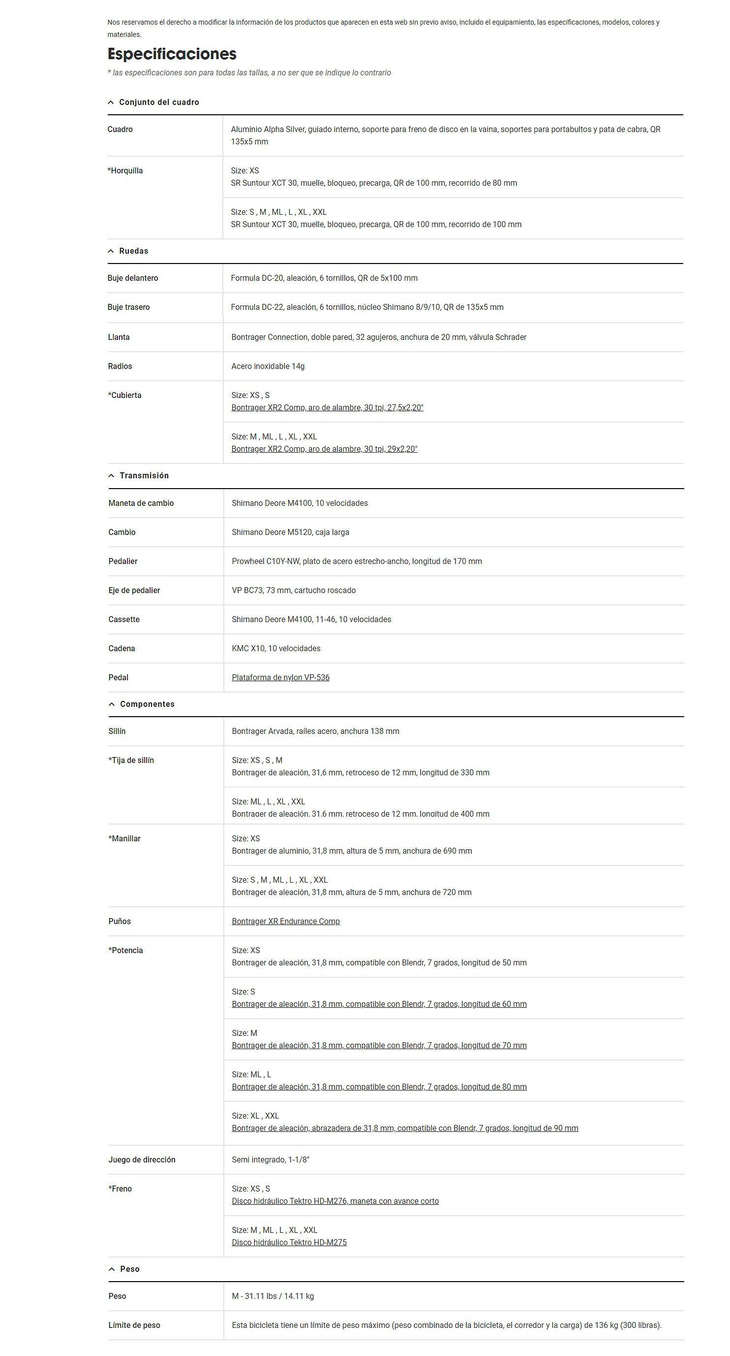 Las tablas a continuación muestran las tallas que recomendamos en función de la altura, pero hay otros factores que deben tenerse en cuenta para lograr un ajuste óptimo, como la longitud del brazo y de la pierna. Es por ello, que, a veces, nuestras recomendaciones se solapan. Por ejemplo, no todos los ciclistas que miden 1,73 cm utilizan la misma talla de bicicleta. La mejor forma de obtener el ajuste perfecto es consultando a los expertos en tu tienda Trek más cercana.