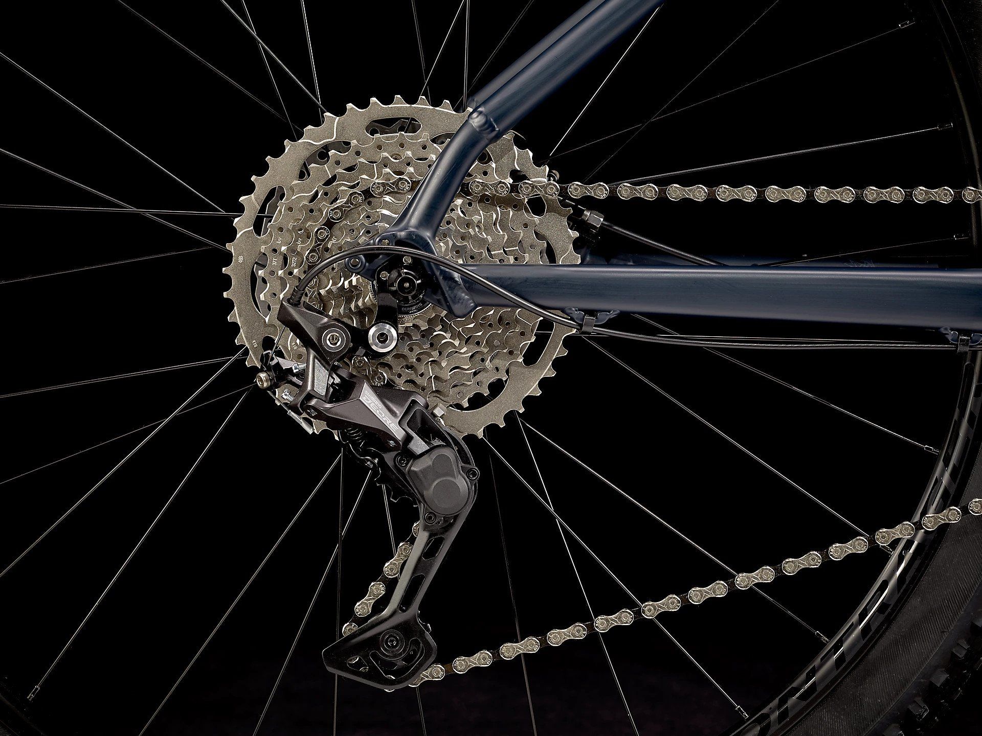 Un cuadro ligero con guiado interno de los cables del cambio y del latiguillo de freno, una horquilla RockShox Judy con bloqueo que aporta más suavidad, frenos de disco hidráulico Shimano y ruedas Bontrager. Una sencilla transmisión 1x sin desviador delantero para reducir el traqueteo y ofrecer un funcionamiento más sencillo. No te preocupes, gracias al cassette 11-46 con una amplia relación de desarrollos, podrás elegir la marcha adecuada para subir sin problema y para lanzarte en las bajadas.