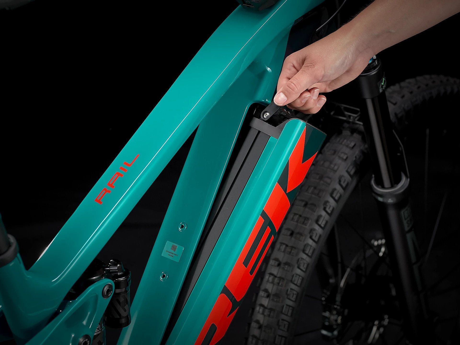 - El sistema Removable Integrated Battery (RIB) de Trek aporta un aspecto impecable y es muy sencillo de usar: permite integrar la batería en el cuadro para protegerla, extraerla fácilmente sin necesidad de herramientas e instalar un portabidón