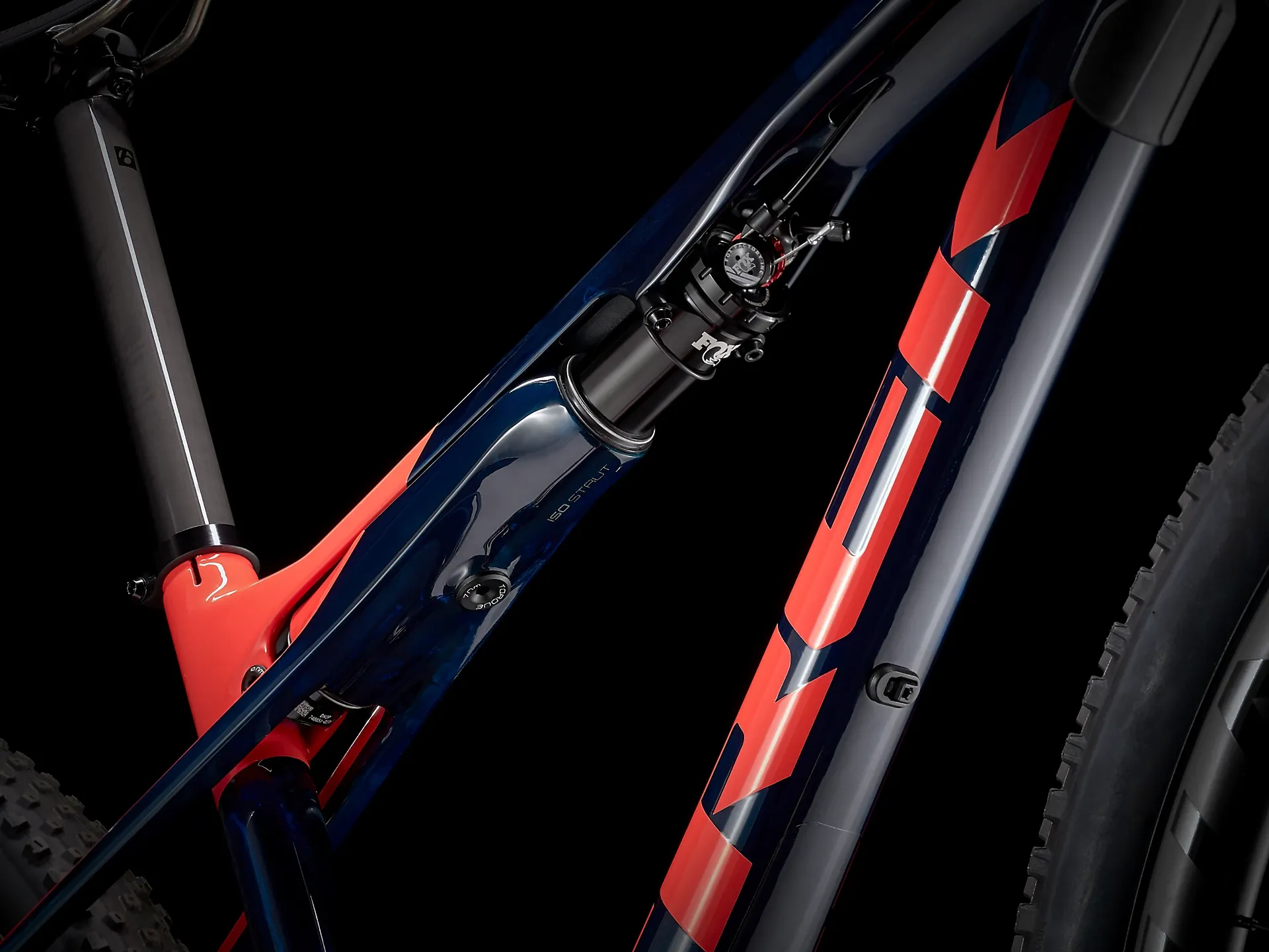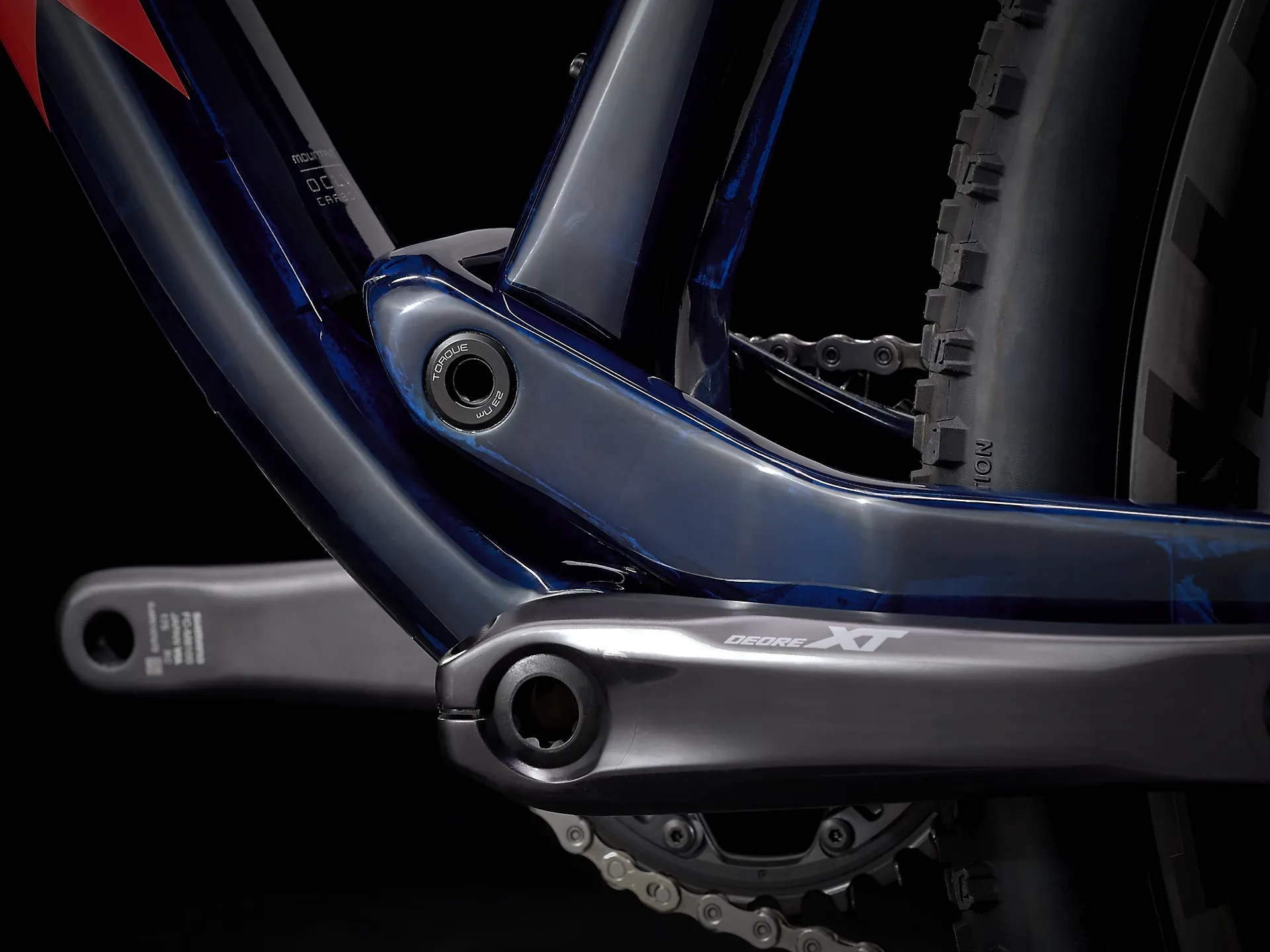 Cuadro ultraligero íntegro de carbono OCLV Mountain con 60 mm de recorrido, horquilla FOX Performance 32 Step-Cast de 100 mm y amortiguador IsoStrut FOX Performance exclusivo de Trek diseñado específicamente para la Supercaliber. Además, incorpora doble bloqueo remoto de la suspensión, una transmisión Shimano XT 1x12 y ruedas de carbono Bontrager Kovee Pro 30 con buje trasero Rapid Drive de 108 dientes para un engranaje rápido.