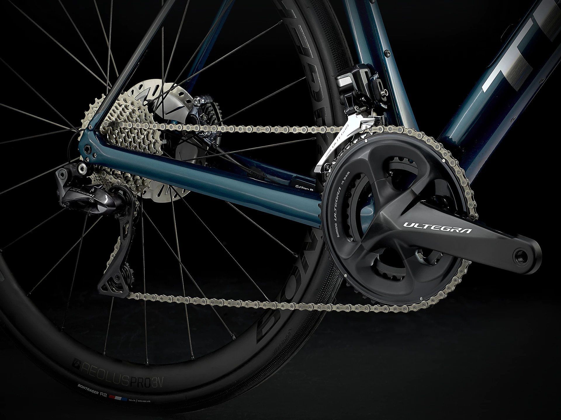 Cuadro de carbono OCLV Serie 500 con geometría Endurance estable e IsoSpeed delantero y trasero que absorbe las vibraciones, potentes frenos de disco flat-mount y transmisión completa electrónica Shimano Ultegra Di2 2x11 para cambiar con la máxima precisión. Incorpora, además, ruedas de carbono Aeolus Pro 3V, manillar Bontrager Elite IsoZone que elimina la fatiga, compartimento de almacenaje interno y el guiado de cables que mejoran la capacidad y aportan un aspecto elegante a la bicicleta.
